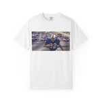 Comfort Colors 1717” garment-dyed t-shirt; made 100% with ring-spun cotton. The soft-washed, garment-dyed fabric brings extra coziness to your wardrobe while the relaxed fit makes it an excellent daily choice. The double-needle stitching throughout the tee makes it highly durable while the lack of side-seams helps the shirt retain its tubular shape.